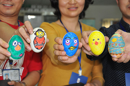五月五日,立夏。一場(chǎng)生動(dòng)有趣的畫蛋比賽在總公司辦公區(qū)舉行。分別來(lái)自各部門的十多名參賽選手,各人領(lǐng)取一只白色大鵝蛋,用公司提供的水彩筆在蛋上現(xiàn)場(chǎng)作創(chuàng)意畫?,F(xiàn)場(chǎng)還邀約員工20名前來(lái)觀摩選評(píng)。通過(guò)民主評(píng)選,最終選出了五只創(chuàng)意作品蛋,并頒發(fā)了精美禮品。