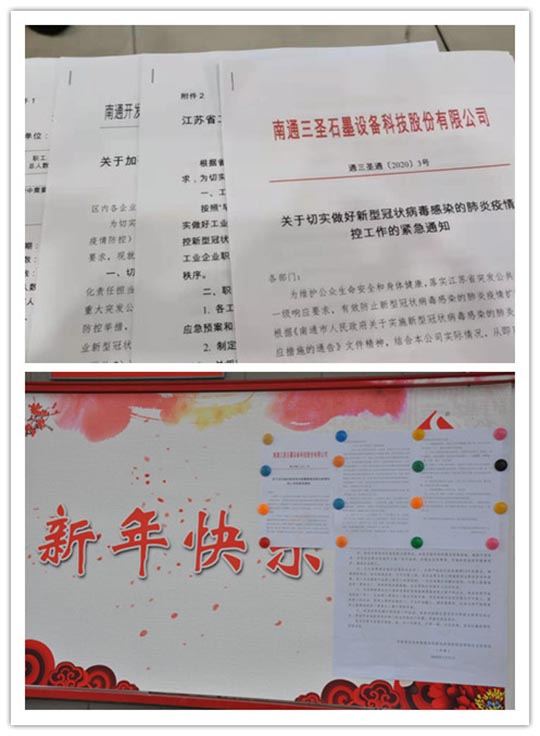 2020年伊始,在這場(chǎng)沒有硝煙的抗疫戰(zhàn)斗中,億萬中國(guó)人民團(tuán)結(jié)一心、同舟共濟(jì),眾志成城抗疫情。自爆發(fā)疫情以來,三圣企業(yè)集團(tuán)也立即成立防疫領(lǐng)導(dǎo)小組,緊急召開兩次會(huì)議,部署相關(guān)防疫工作,嚴(yán)格執(zhí)行《南通市人民政府關(guān)于實(shí)施新型冠狀病毒感染的肺炎疫情一級(jí)響應(yīng)措施的通告》文件精神。