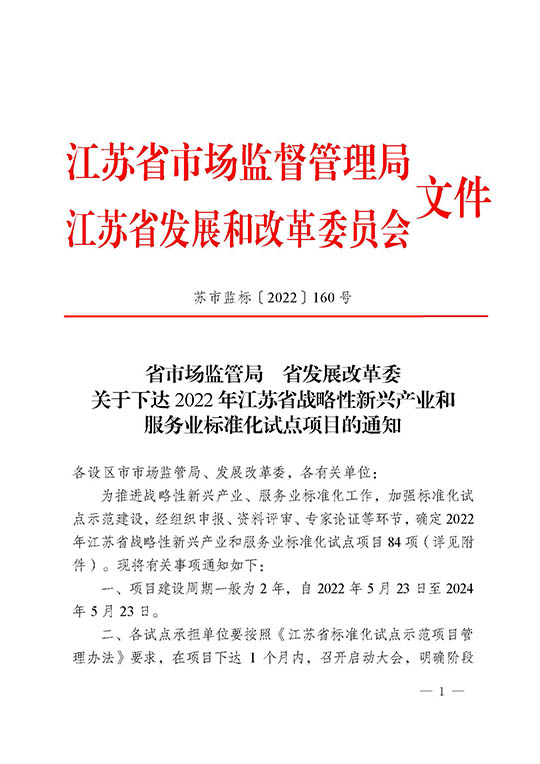 江蘇省戰(zhàn)略性新興產(chǎn)業(yè)標(biāo)準(zhǔn)化試點項目由省市場監(jiān)督管理局和省發(fā)展和改革委員會共同組織。項目對申報單位有著明確的要求:市場占有率和經(jīng)濟(jì)效益排名位于本地區(qū)同行業(yè)前列,具有良好的發(fā)展?jié)摿?,具備統(tǒng)籌技術(shù)創(chuàng)新、標(biāo)準(zhǔn)研制和產(chǎn)業(yè)化的能力等等。