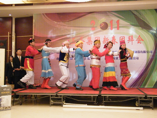 今年的團(tuán)拜會采用了新穎的服裝走秀形式,令人耳目一新。